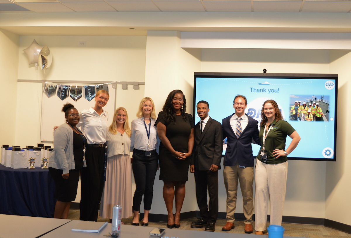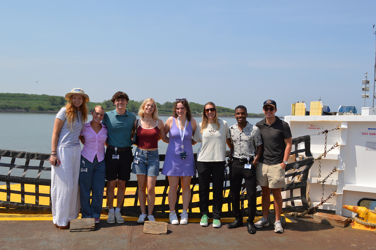 Onboard the Ferry, interns visit the Bridge and see how captains navigate. After they posed on the car deck.