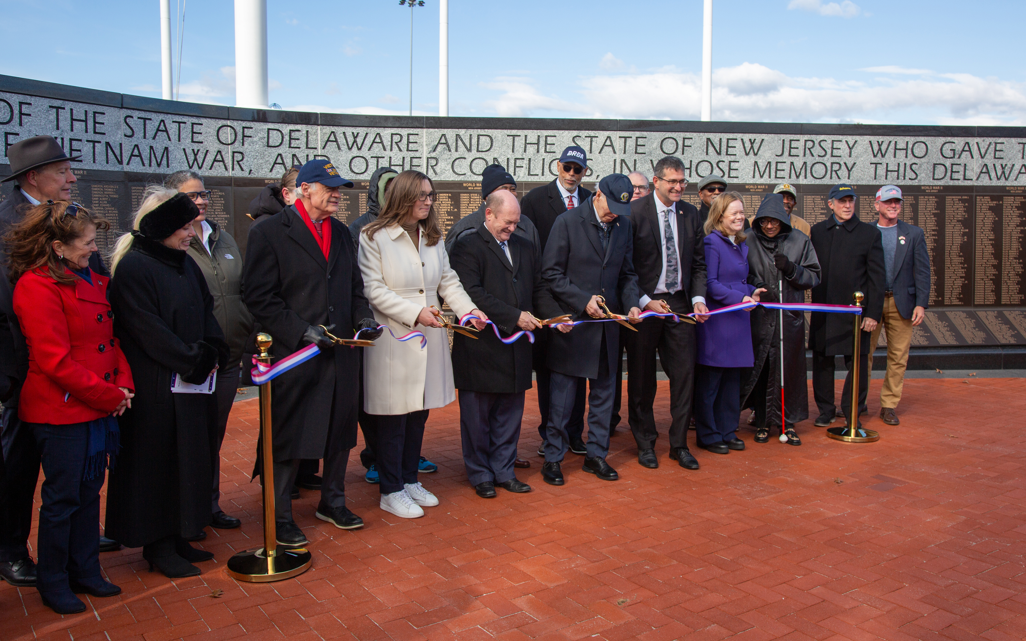 NEW CASTLE, Del. Today, Delaware River and Bay Authority (DRBA) officials joined with federal and state elected officials to commemorate the completion of the iconic Wall of Remembrance Memorial renovation project, located at Veterans Memorial Park adjacent to the Delaware Memorial Bridge. The $5 million, multi-phase project, which began in June 2024, significantly expanded the wall to ensure every serviceman and servicewoman from Delaware and New Jersey who perished in wars and conflicts from World War II to the present day is now recognized. Previously, the War Memorial Wall contained names from World War II and the Korean War only.